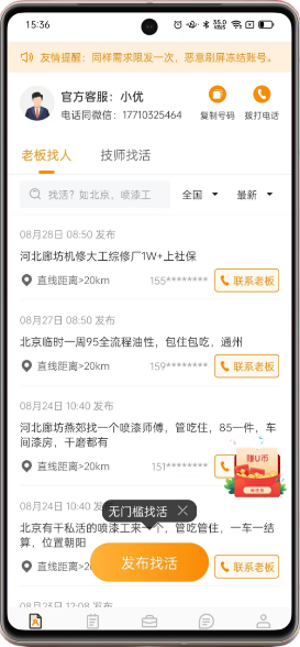 李师傅·喷漆已实名01月04日 14:56 发布北京北京找份喷漆的工作,在奔驰店工作十余年熟练使用水性漆,可单独作业也可团队流水线合作完成工作,需要用人的可联系查看详情 >186********立即联系